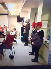 ![]() Jyväskylän Sotilaskotiyhdistyksen sisaret auttoivat tuttuun tapaan tarjoiluissa, ja puuroa "sekametelisopan" kanssa tai ilman maistui kaikille. Puhumattakaan torttukahveista! | ![]() Joululauluvihkoja selattiin, ja sitten laulettiin! Ansan ansiosta opittiin myös uusi joululaulu "Pienen lampaan jouluyö". |